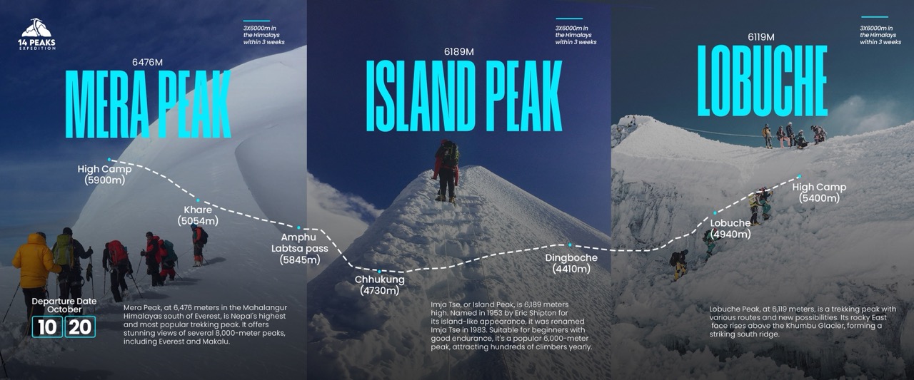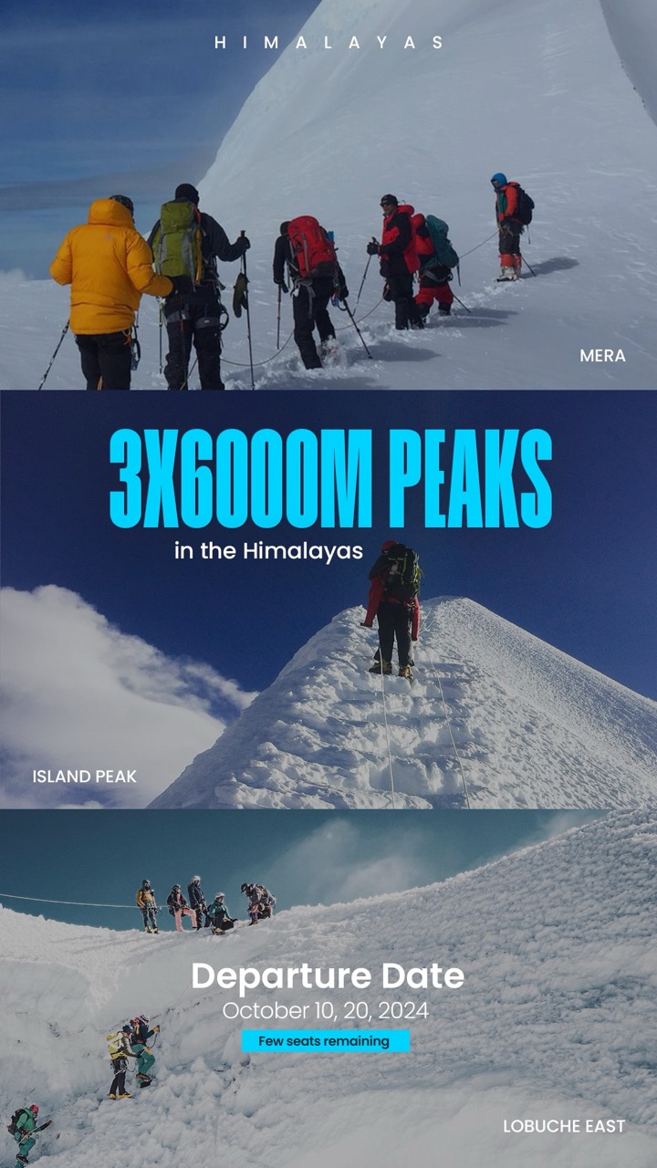 Three peaks climb in Nepal offers an excellent introduction to real Himalayan mountaineering by climbing three iconic six thousand-meter peaks in a single trip.